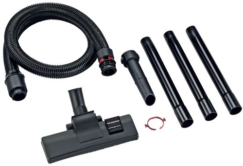 Daarnaast zijn er drie kunststof verlengbuizen van elk 360 mm inbegrepen, samen met een handbuis (model K-C 32 HT). De combivloerborstel is uitgerust met zowel een borstel- als een rubberen strook, waardoor hij geschikt is voor zowel harde als zachte vloerbedekkingen.
