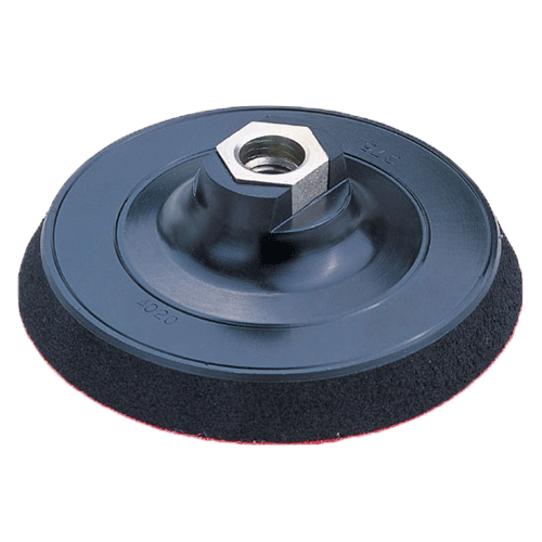 Dankzij de Velcro-laag blijven polijstpads stevig zitten. De diameter bedraagt 125 mm.