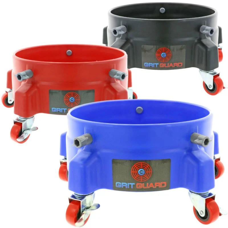 Grit Guard Bucket Dolly is een zeer robuust rolonderstel voor jouw auto wasemmers. Het stevige wielonderstel heeft 5 stabiele zwenkwielen die toelaten je grote wasemmers makkelijk te verplaatsen zonder ze op te tillen. Twee van deze wielen kunnen aan de onderzijde vergrendeld worden om wegrollen te voorkomen.